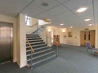 The Foyer is centrally situated between the Pierce Hall and the downstairs offices (below the Chapel). The stairs lead directly to the Chapel